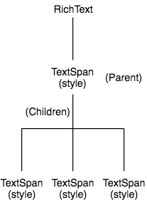 가장 상위에 RichText, 그 아래 부모 위젯으로 TextSpan이 오고 이 TextSpan부터 텍스트를 이용할 수 있습니다.